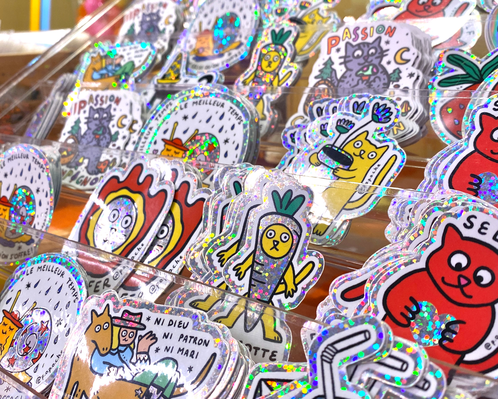 Découvrez des stickers pailletés réalisés par la communauté d'artistes fans de StickerApp.