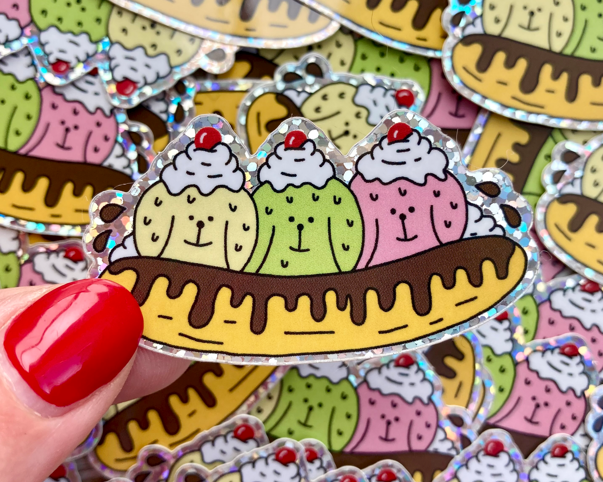 Avec des stickers pailletés, vous obtiendrez des designs sérieusement brillants et scintillants. Avec ce matériau, vous pouvez avoir un sticker entièrement pailleté ou choisir que certains détails de votre sticker soient pailletés. Cerise sur le gâteau : c'est le matériau lui-même qui a une apparence pailletée. Ce ne sont pas des particules de paillettes physiques individuelles, donc vous ne laisserez pas de paillettes partout derrière vous.