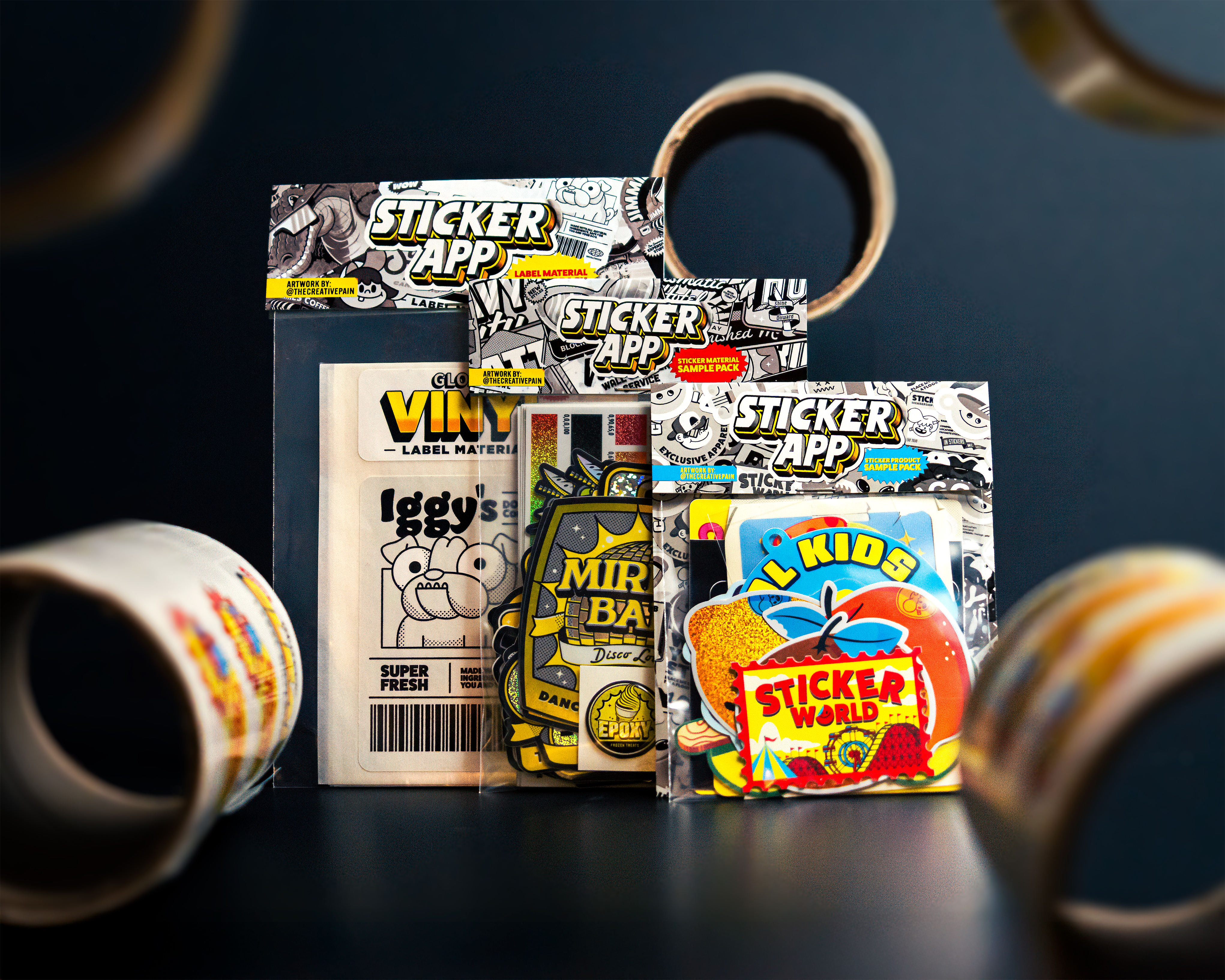 Découvrez la qualité StickerApp avant de passer votre commande ! Choisissez parmi nos matériaux d’autocollants, d’étiquettes et packs d’échantillons de produits - du brillant et mat au pailleté, transparent et bien plus encore. Trouvez la combinaison parfaite et commandez en toute confiance !